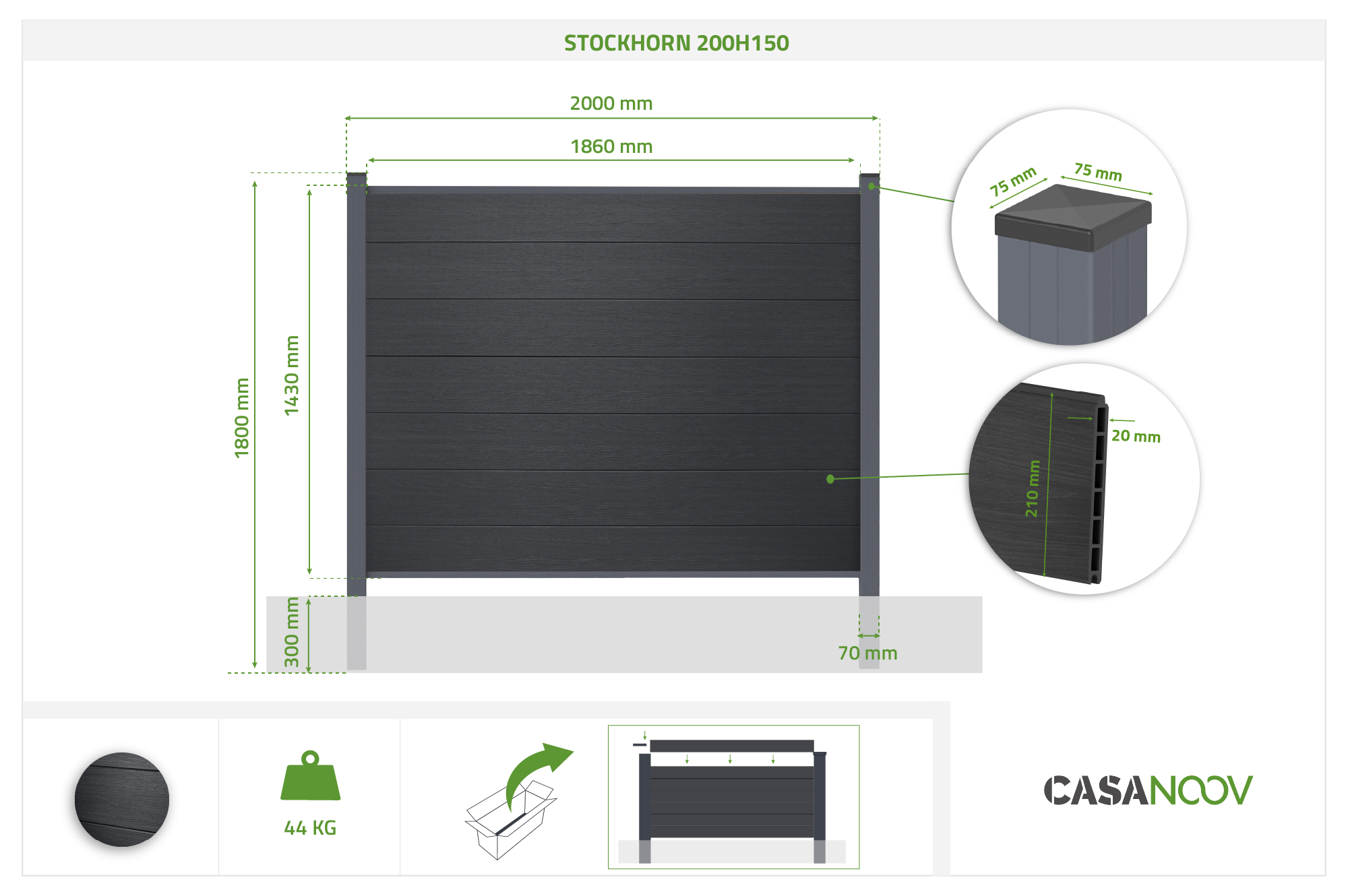 Clôture composite 2m STOCKHORN H.150cm à sceller gris