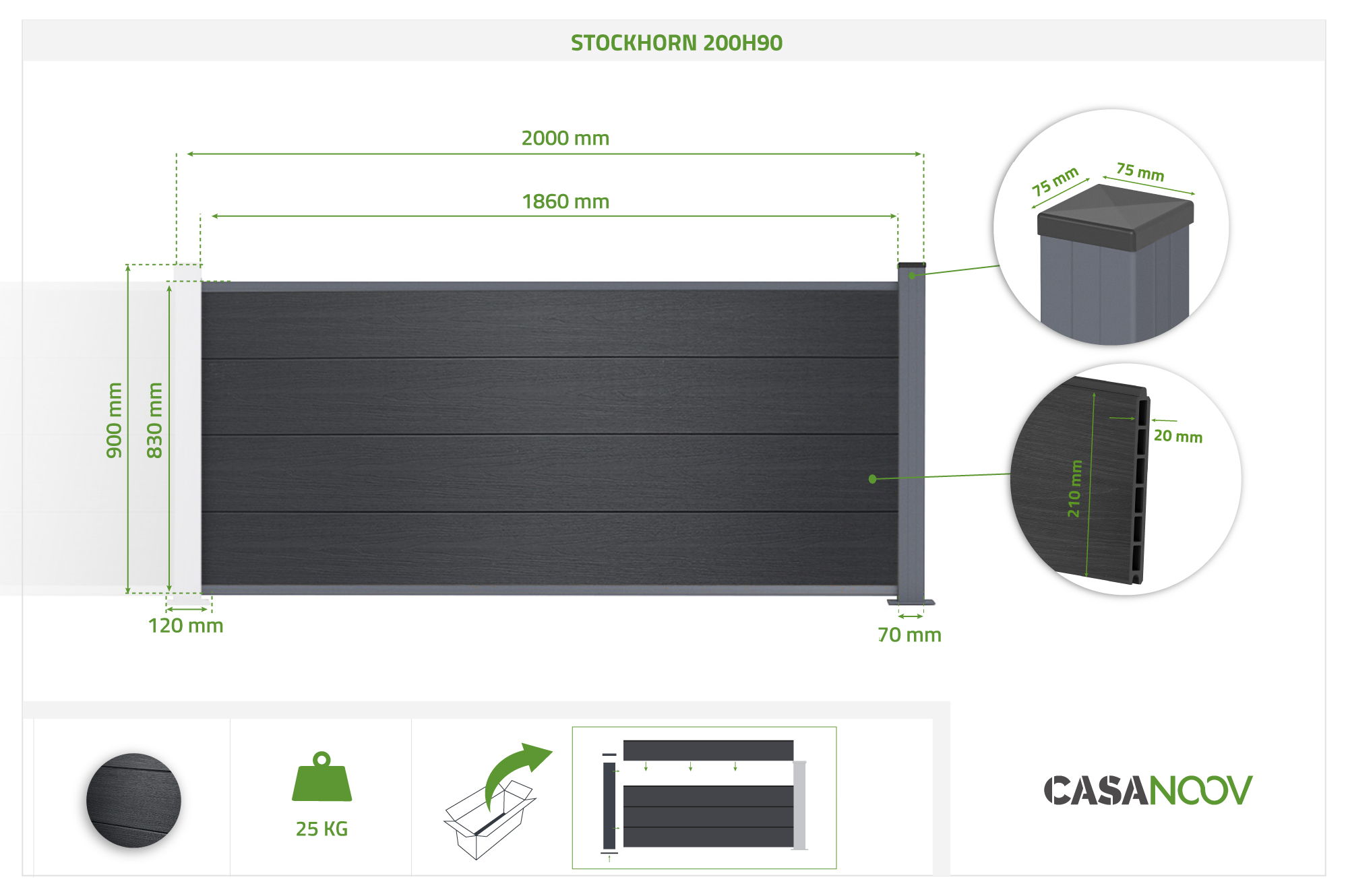 Kit extension clôture composite 2m STOCKHORN H.90cm sur platine gris